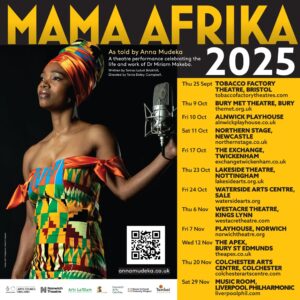 We are delighted to be supporting Mama Afrika, on tour this Autumn to theatres across the country. Starting in Bristol, Bury, Alnwick, New Castle, London, Notingham, Sale, Kings Lynn, Norwich, Bury St Edmund, Colchester and finishing in Liverpool.