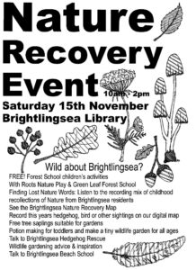 You will also be able to view an interactive, digital, Nature Recovery map of Brightlingsea – you can learn how to use it to create a Nature Recovery map for your own town or organisation. Roots Nature Play will be there with activities for the children (and adults if you’d like). Find out more about Essex Bird Aware, Brightlingsea Beach School, Essex Naturalist Association, Brightlingsea Hedgehog Rescue and Brightlingsea Community Allotment and more!